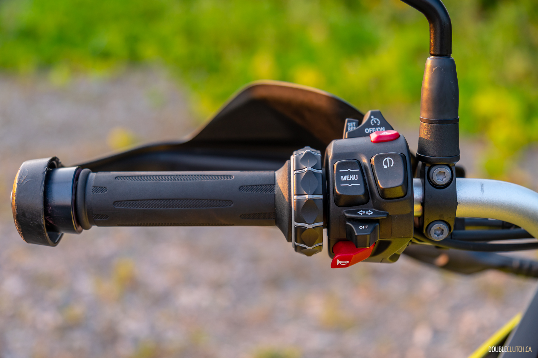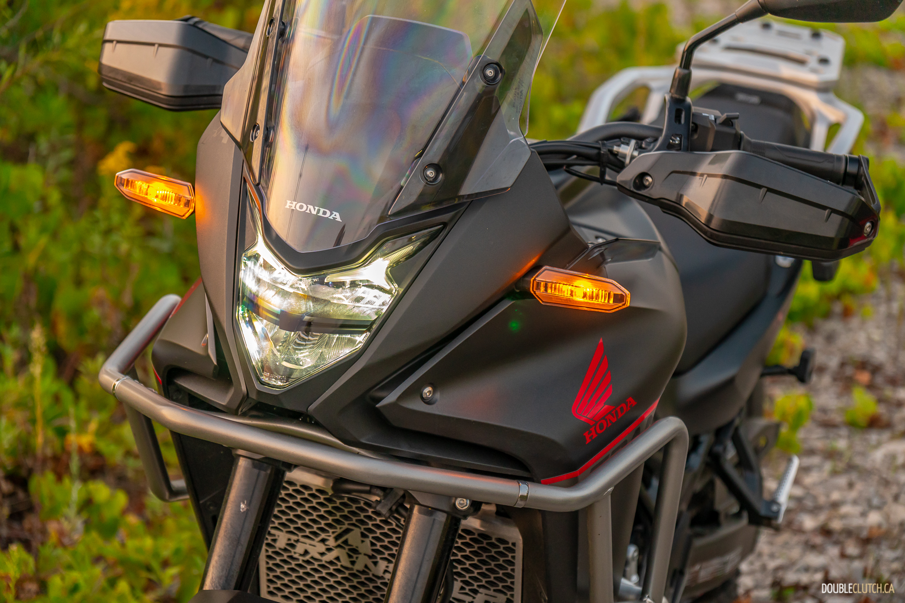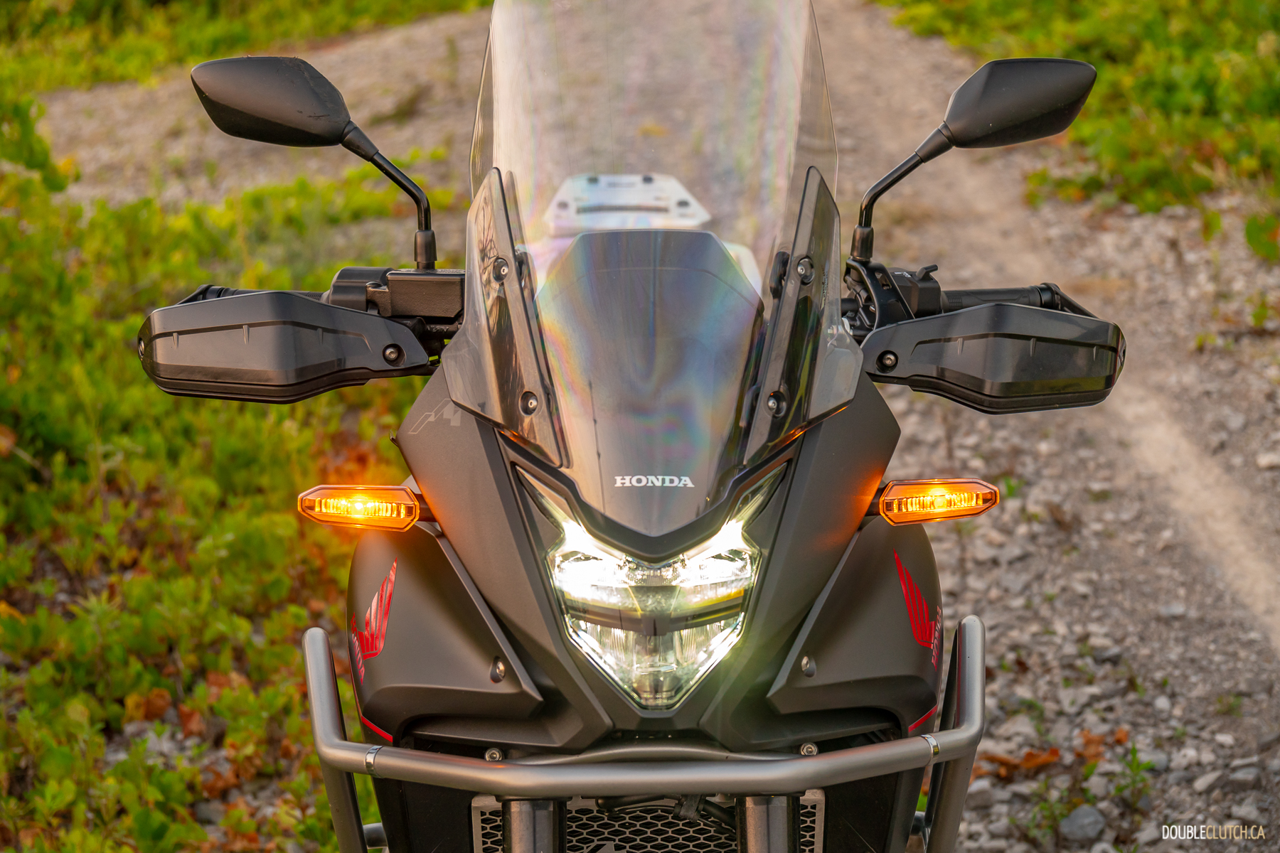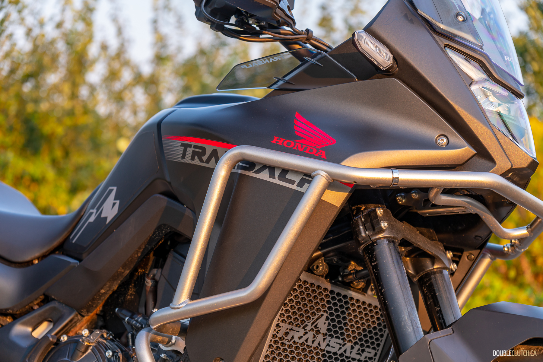 The Transalp is very friendly bike, with an upright riding position and a tall windscreen. This tester was fitted with an extra high windscreen and deflectors to further reduce wind turbulence, to a point where my unzipped jacket didn’t blow around at highway speeds. The engine is fairly quiet and smooth, with enough bottom end to make trundling through traffic or crawling up a trail a cinch. It’s not the fastest thing on Earth, but it has more than enough power to confidently merge, pass, and have fun. It sounds meaty when approaching its 10,000 rpm redline, too.