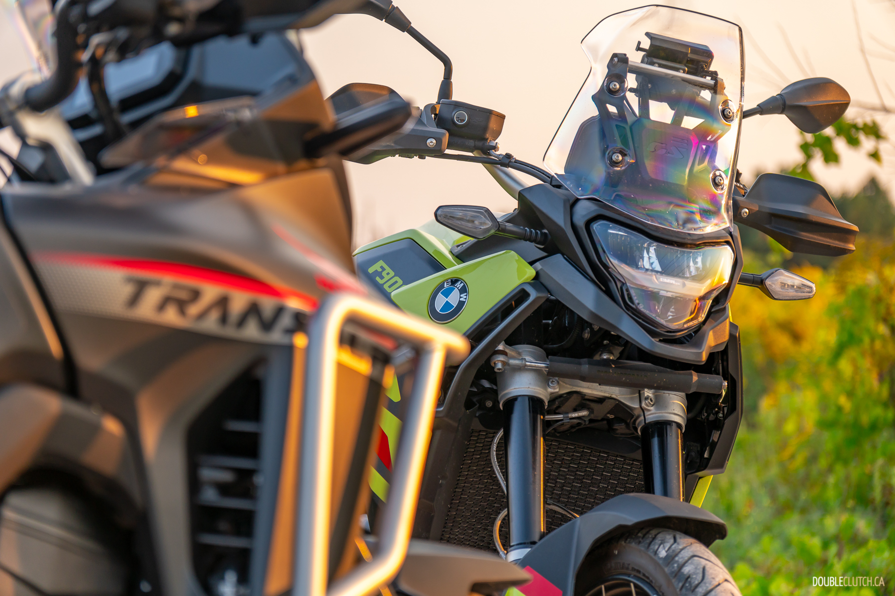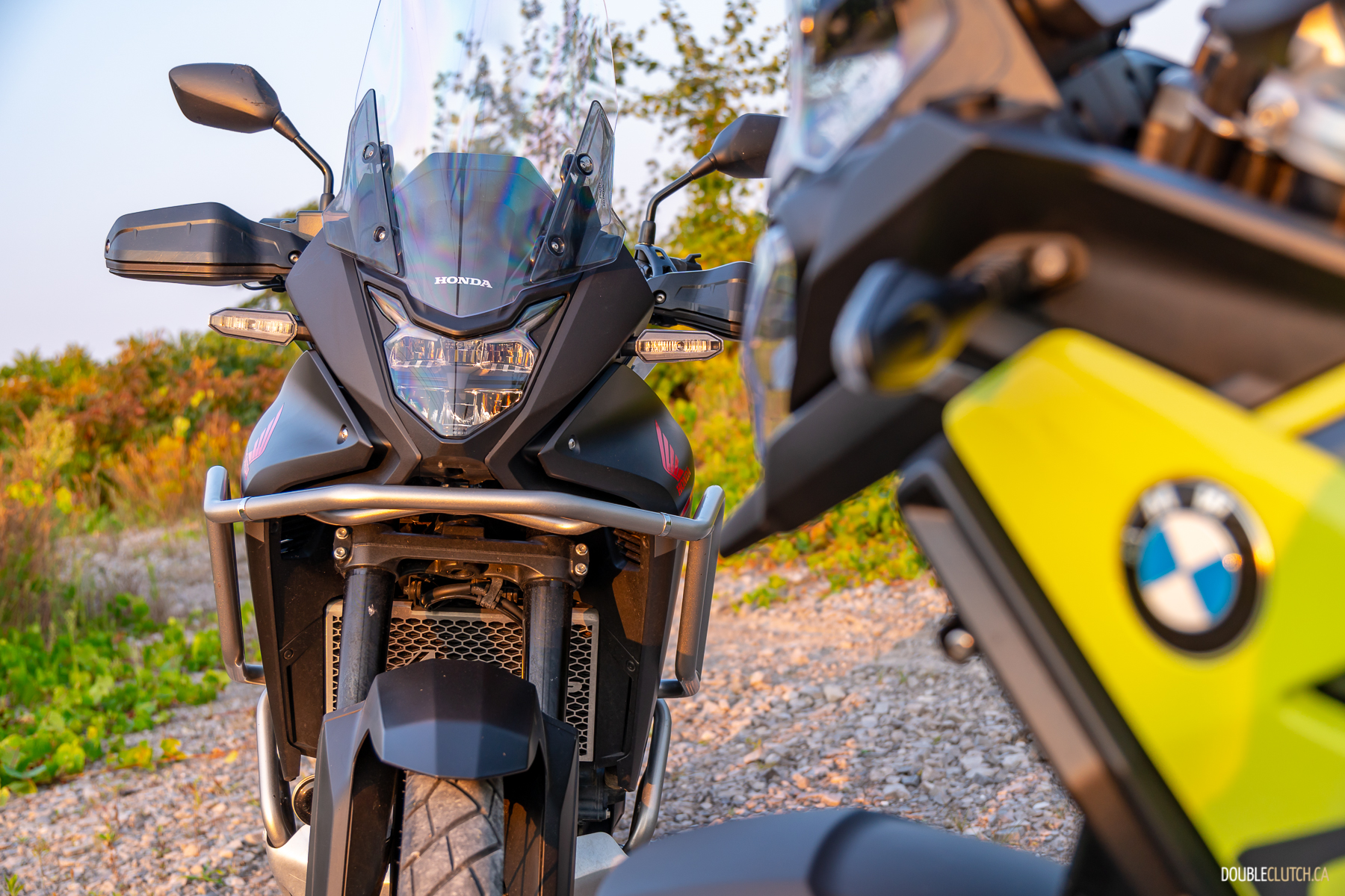 Where the Transalp is fitted with everything Honda’s accessory catalog has to offer, covered in guards and bars and ready to be thrown off a cliff, this BMW goes hard in the other direction with smaller fairings and an exposed rear frame, painted for flair points. That’s not to say the BMW is stripped out; it has a longer standard feature list, has a bigger and slicker dash interface, has more optional niceties like cruise control, and of course, has more motor. Both look like they’re ready to go into battle, but carry themselves quite differently.