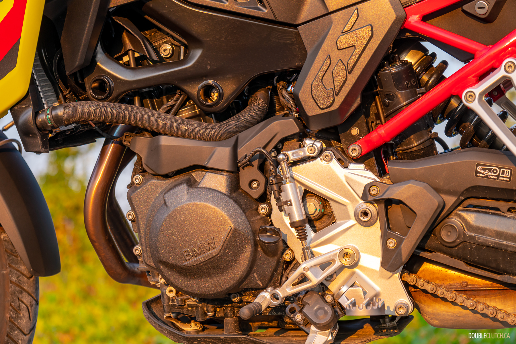 The F900 has a revised riding position with higher handlebars and lower footpegs, along with an easily adjustable gear lever to suit you exactly. Similarly, while both bikes have adjustable Showa inverted front forks, the BMW offers more adjustability and the ability to make that greater adjustment on the fly. Despite going out of its way to cater to your needs, the F900 is decidedly the more aggressive bike of the two.