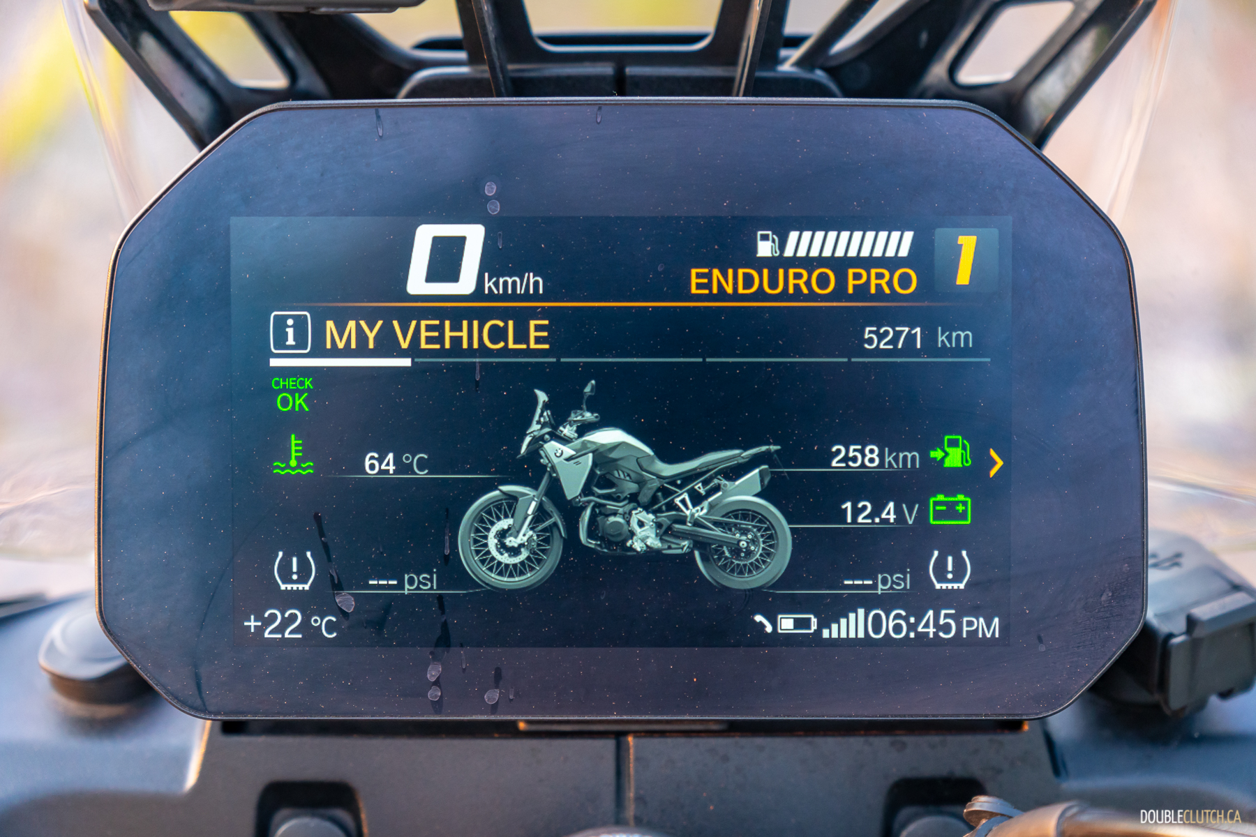 Despite having a slight weight penalty over the Transalp, the F900 GS carries its weight well and hides it. The F900 feels like it has a lower centre of gravity despite visibly sitting higher; it’s less inclined to lean and asks you to push harder into a corner, but it feels planted and eminently stable. This is really reassuring at the speeds this thing is capable of. The F900 GS is definitely an edgier machine than the Transalp, but it has good bedside manners and has your back just as well, with similar ride modes and a variable electronic safety net.