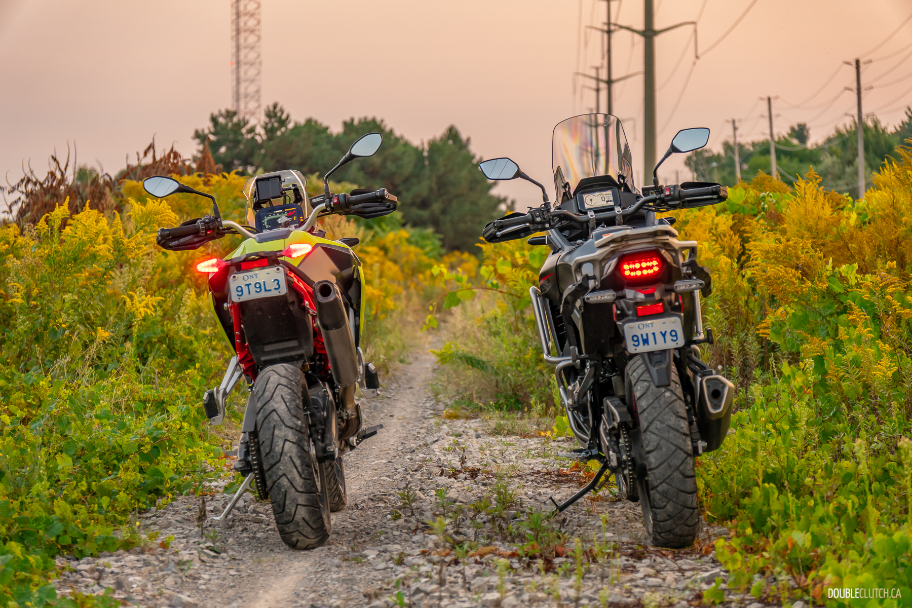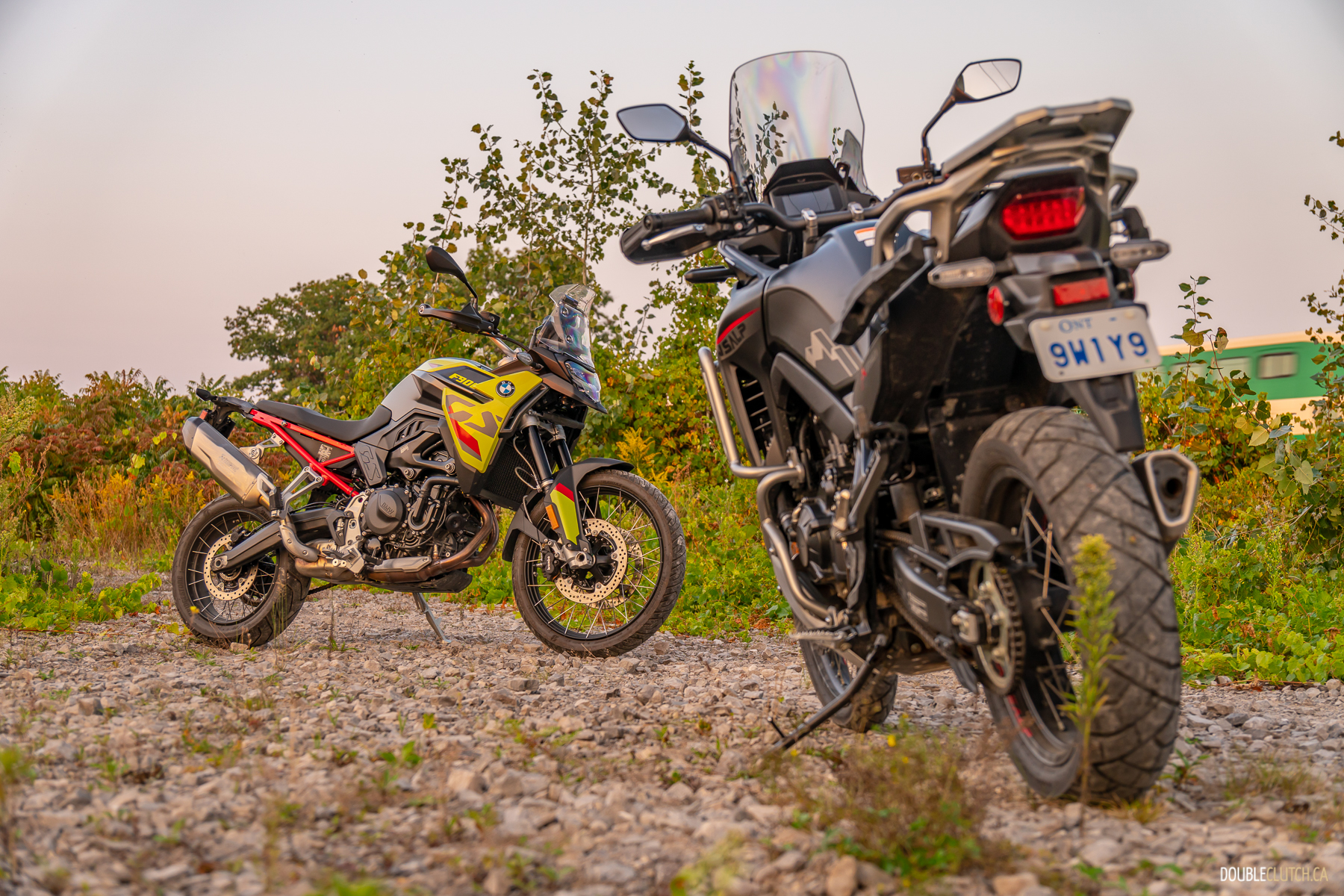 The general theme of friendlier-versus-edgier persists off-road too, but the Transalp and F900 GS aren’t nearly as far apart as they are on-road. Both are easy to fling through a trail, making short work of ruts and loose gravel. The Honda shrugs it all off a little more nonchalantly, doing a better job of shielding you from what’s going on, and its proclivity for manoeuvrability gives it an advantage with tighter situations.