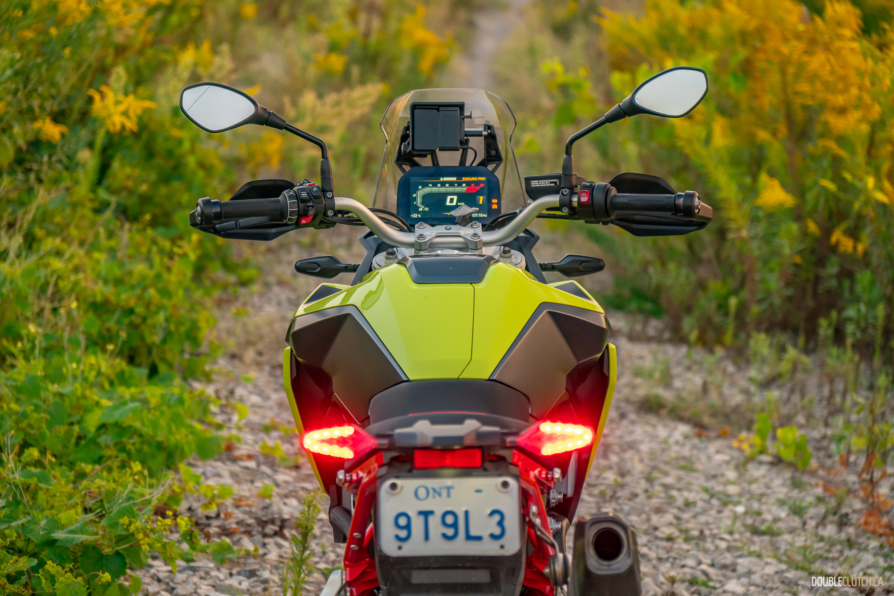 The F900’s standard Akrapovic exhaust is louder, it has an angrier intake snarl, the riding position has you leaning forward in more of an attack position, the clutch is a little harder and more grabby, but it’s offset somewhat by an incredibly slick quickshifter—optional on this bike—and the raw merit of having more significantly more grunt everywhere. It rides a little harder and transmits quite a bit more vibration through the handlebars at speed, despite being fitted with a steering damper.