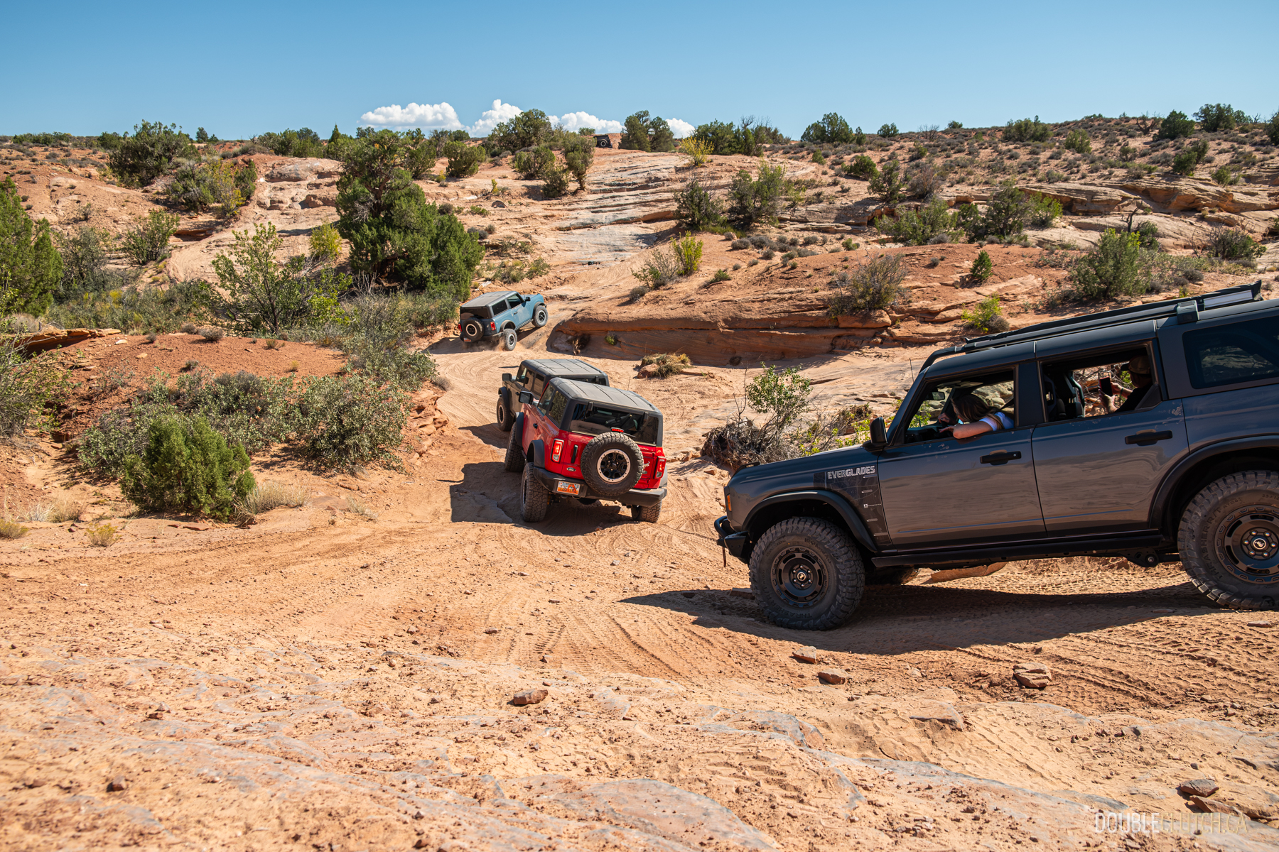 Our off-road journey with the Ironhead Thrasher R/T started in Moab, Utah. It’s the perfect backdrop for a rugged off-road tire test; the picturesque red rock landscapes from afar, but when you get up close, you realize the terrain isn’t for the faint-at-heart. Sailun slapped their Ironhead Thrasher R/Ts on some already-rather-capable Ford Broncos, and our journey swiftly began where the pavement ended.