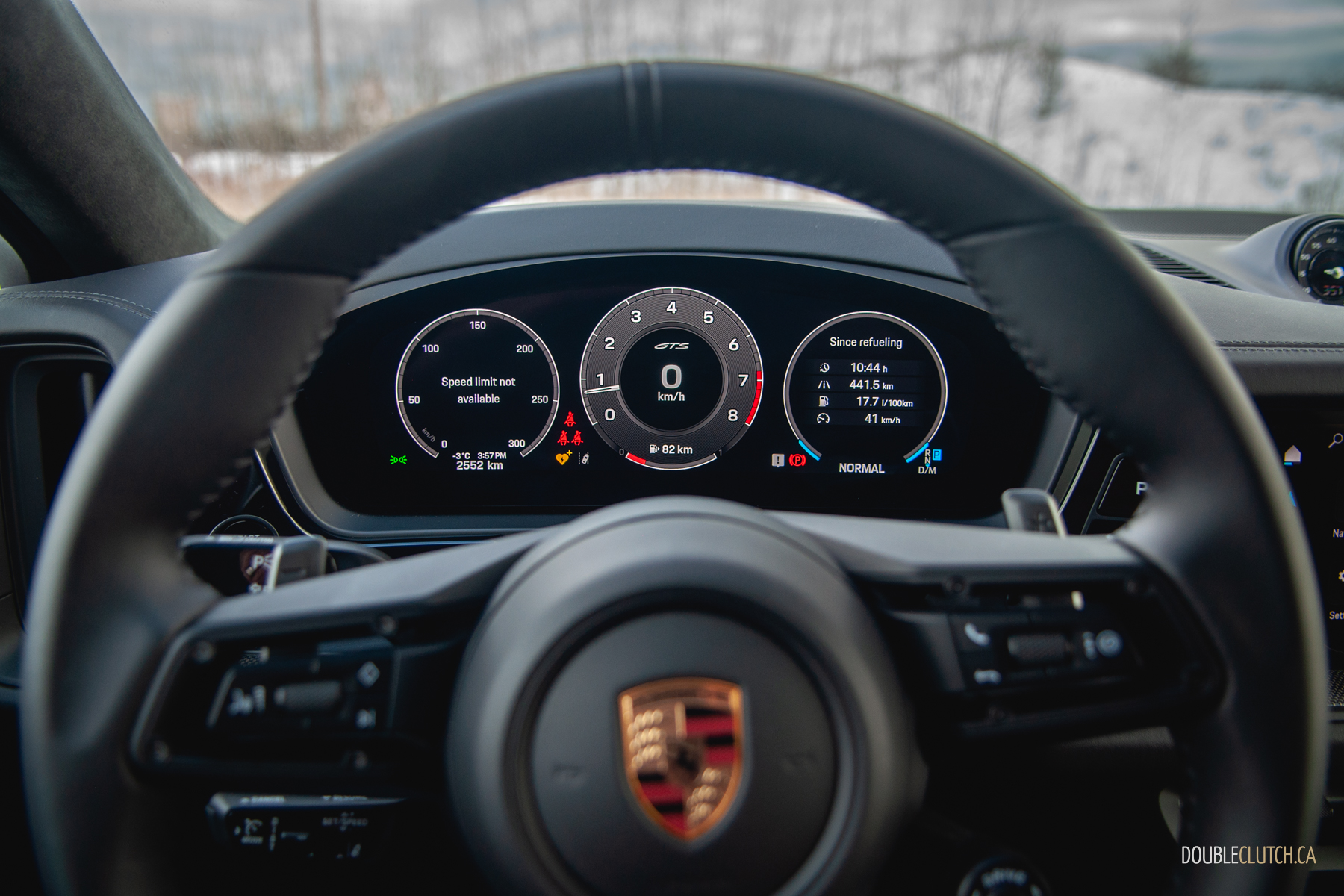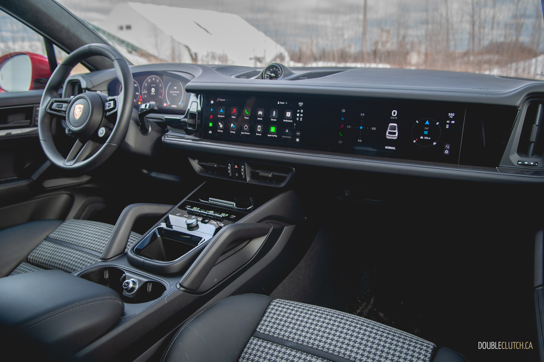 But I’m used to the loss of the analog tach, just like I’m used to the new shifter. By moving it up to the upper dash, between the two screens and obstructed by the steering wheel, it opens up a good bit of extra storage, and Porsche still includes a row of switches for quick climate control adjustments—all of which finished in a very pretty knurled look. But the acres of gloss black trim and haptic-feedback controls coating the rest of the centre console, including the climate controls, is an acquired taste. Hey, I said I’m used to it all; that doesn’t mean I like it.